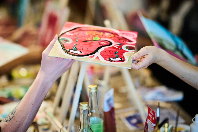 Switch & Paint est un atelier collaboratif où les participants échangent leurs toiles au fil de la séance. On crée, on partage, on rit… et on découvre le résultat final avec surprise.